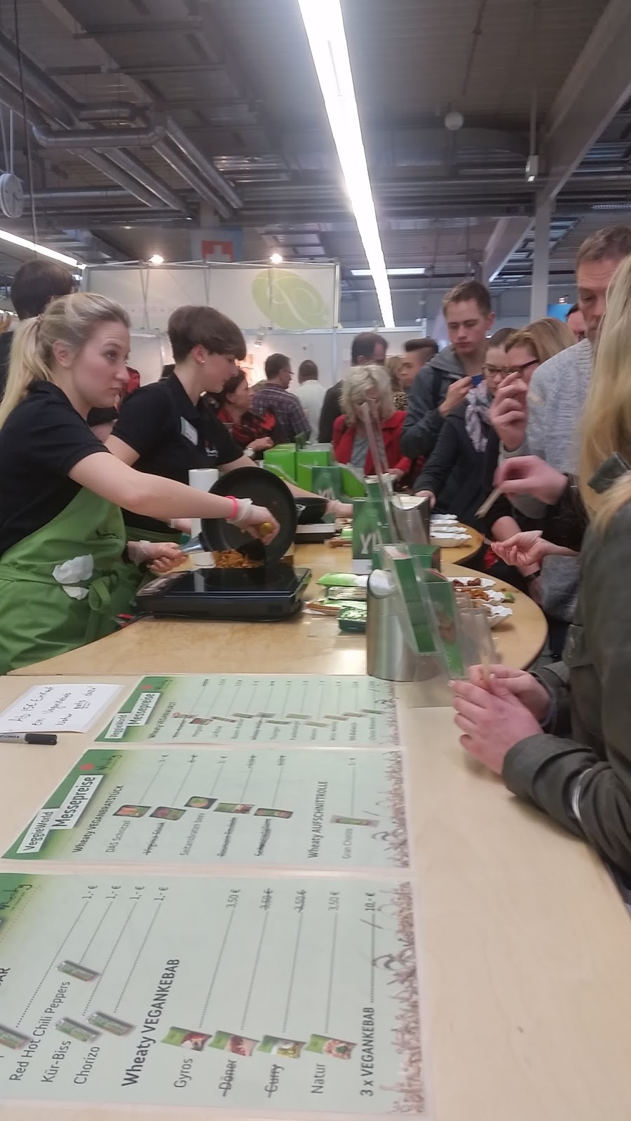 I really had no idea what to expect when I was going to VeggieWorld. How many other vegan supporters could there be in this area? I thought it was maybe a small event with a few vendors. No matter what I thought, I was for sure going to check this out to show my support and also get some yummy veggie food! Well when I got there I was so shocked how huge this event was. There was parking all over an industrial area of the town and in every parking lot in the area. The expo was in a huge two floor event hall! Everything was so professional and organized I was so impressed. It cost 12 euro to enter the expo and my parking was 3 euro.